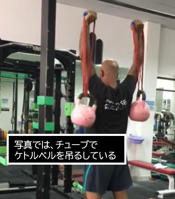 『不安定にして保持困難にした負荷』はチューブで吊るしたプレートなどで、ダンベルやバーベルのかわりに使用します。