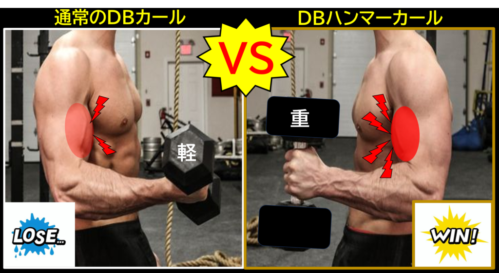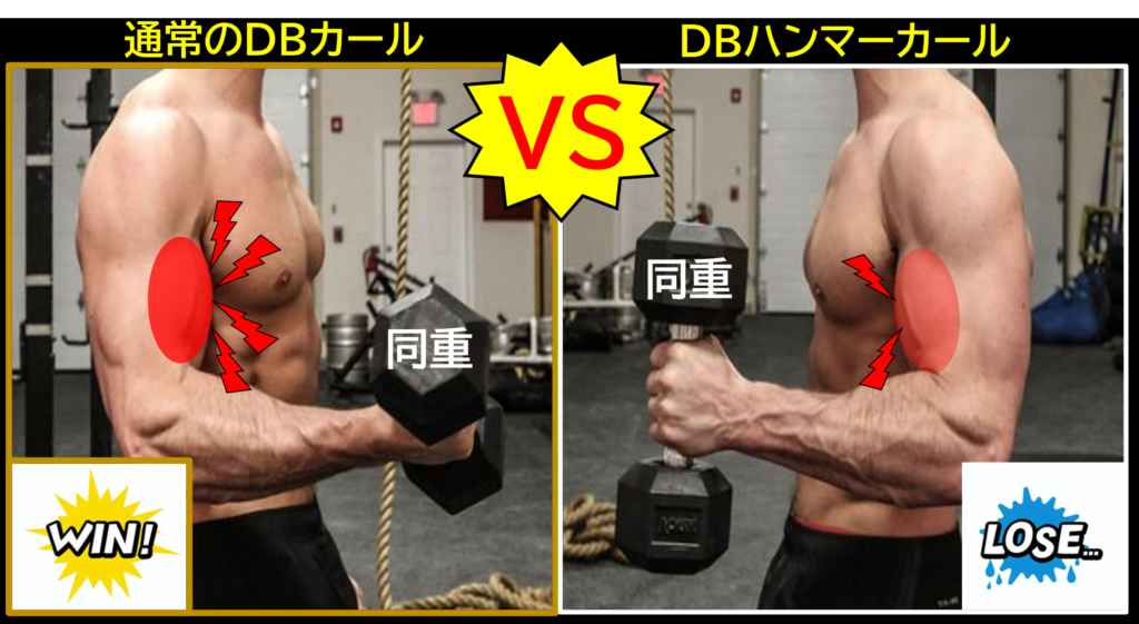 通常DBカールとの筋肥大比較