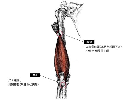 上腕筋の起始停止です。