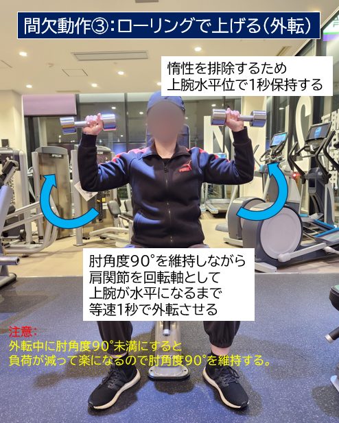 ちなみに私の場合、動作4の『Negative重視アップライトロウ』では、スキャプラプレーンを意識していません。行いにくいからです。
