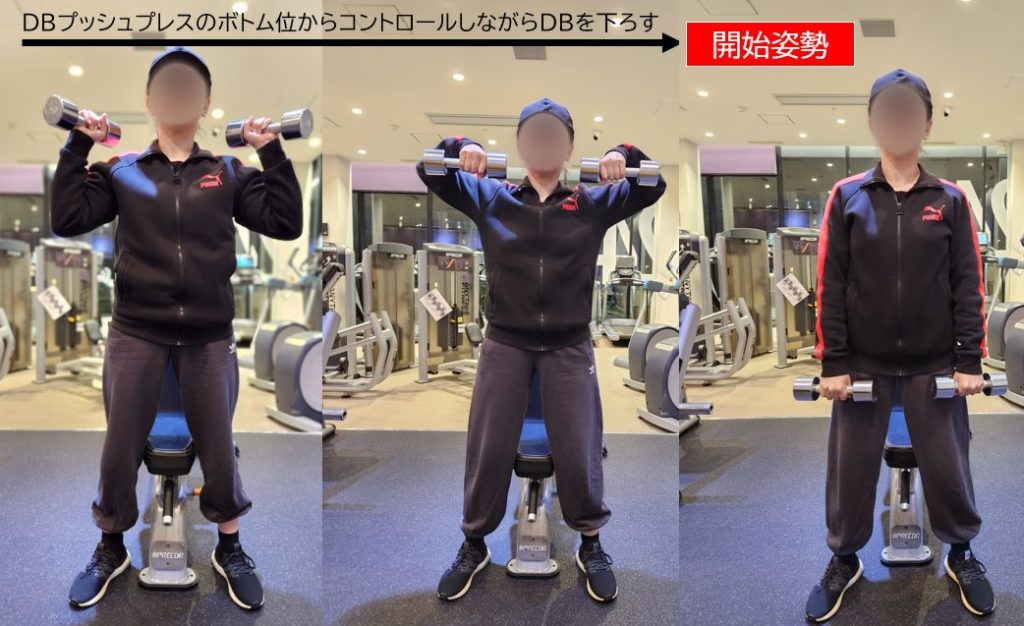 動作が4つありますが、1つ目の『ローリングDBショルダープレス』は一般的ではないと思います。過去記事で紹介していますので、ご参照下さい。
