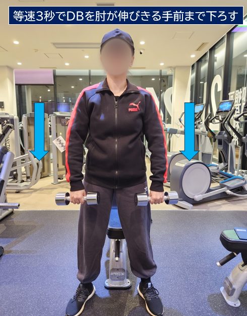 通常のドロップセット法は重量を変える際に筋肉の緊張が抜けてしまいますが、メカニカル・ドロップセット法はウェイトを保持したまま姿勢や動作を変えるので、筋肉の緊張が抜けません。これが特徴的です。