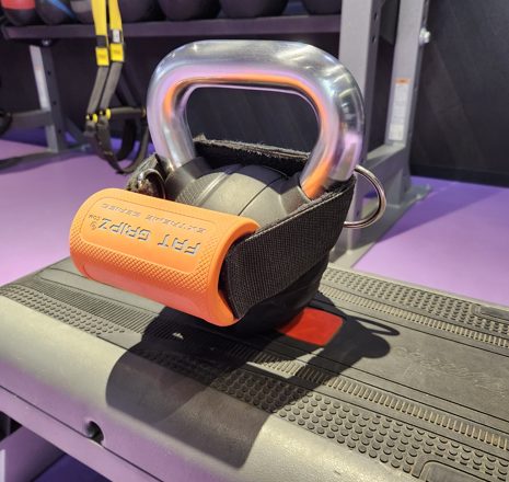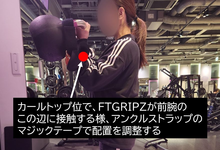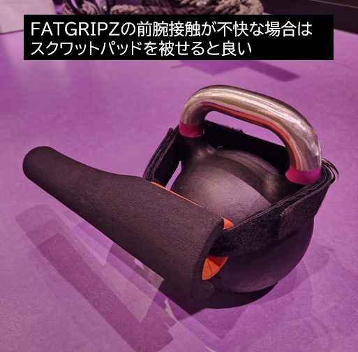 マジックテープで長さが調整できるので、小さいケトルベルでもFATGRIPZの配置が調整できます。