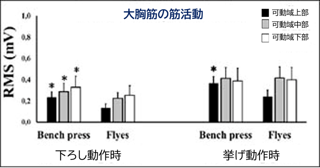 出典:Solstadら著 A Comparison of Muscle Activation between Barbell Bench Press and Dumbbell Flyes in Resistance-Trained Males Figure 4.